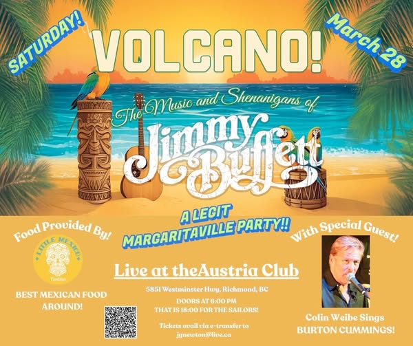 Looking for something different to do at the AVC? Steveston Boatworx is hosting a Jimmy Buffett tribute band on March 28. Tickets are available as noted in the poster. DO NOT CONTACT THE AVC.