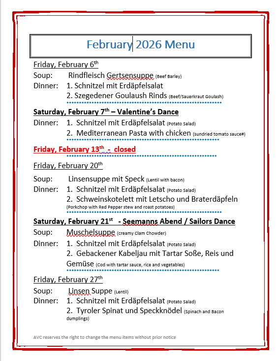 We offer a selection of Austrian food at our events. They are prepared in-house by our volunteers and are served fresh on the day of the event. While we always offer our Schnitzel with Austrian potato salad, our second meal and soups vary every week.